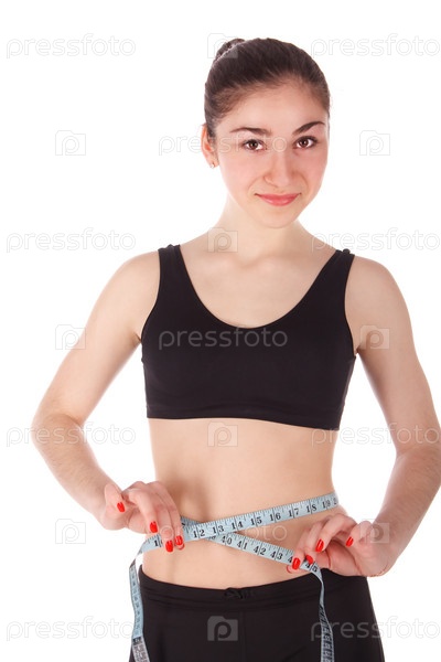 Счастливая девушка измеряет объем талии
