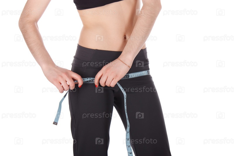 Девушка измеряет обхват бедер