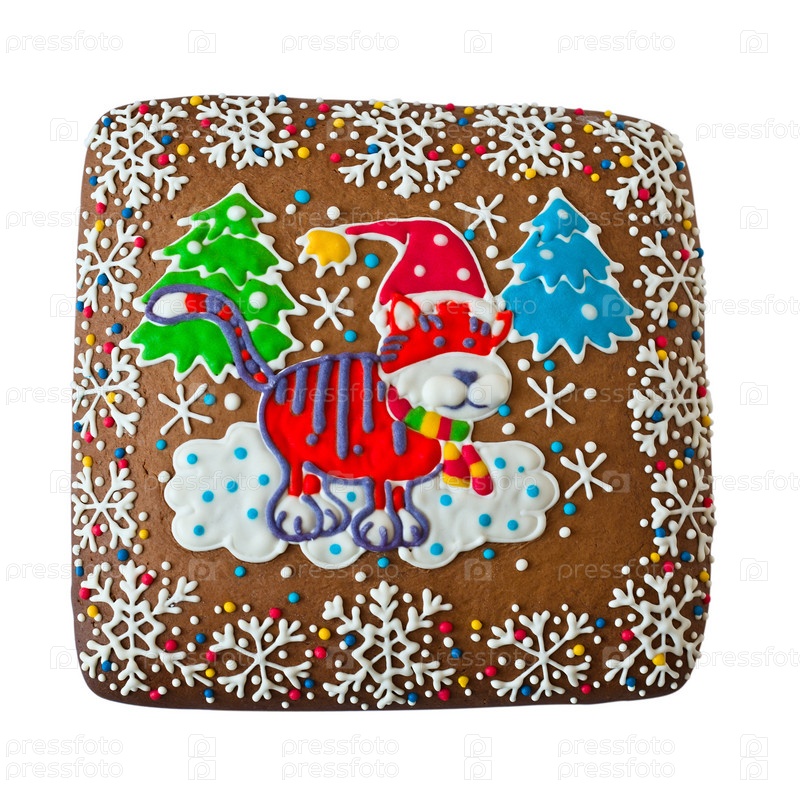 Пряник с нарисованным тигром на белом фоне
