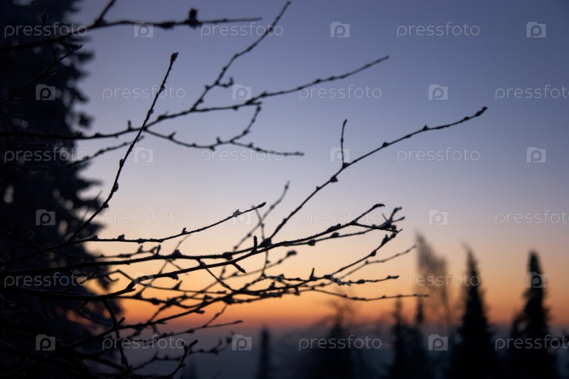 Раннее утро в зимнем лесу, Южный Урал, Россия