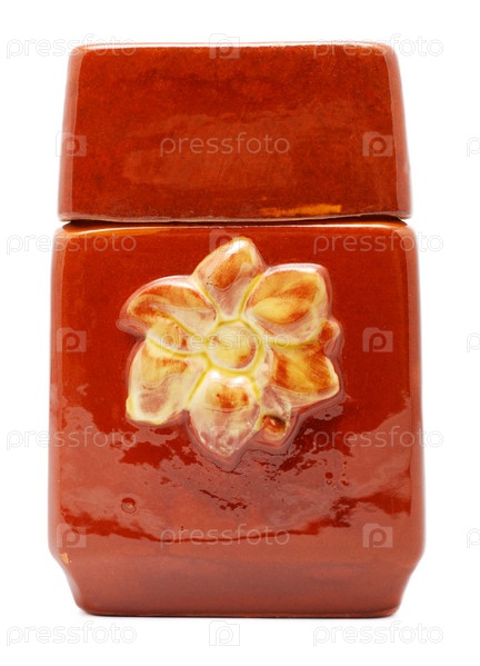 Коричневая керамическая емкость на белом фоне