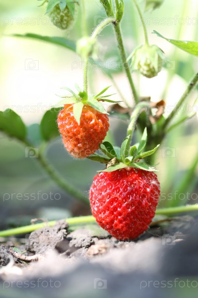 Клубника на ветке крупным планом