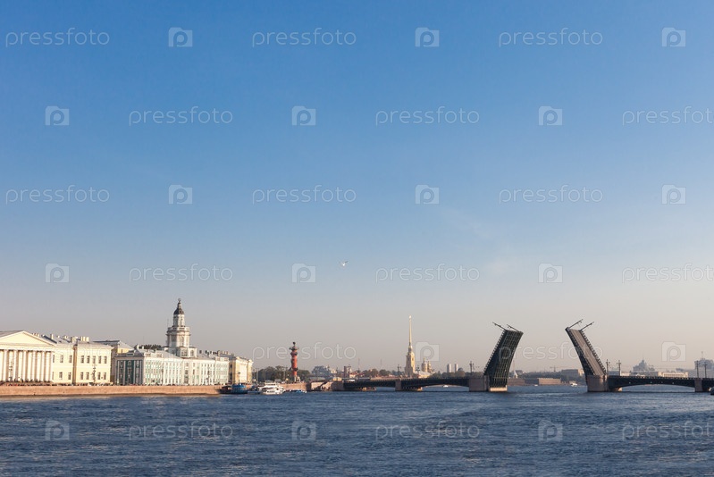 Панорама разведенного Дворцового моста в Санкт-Петербурге