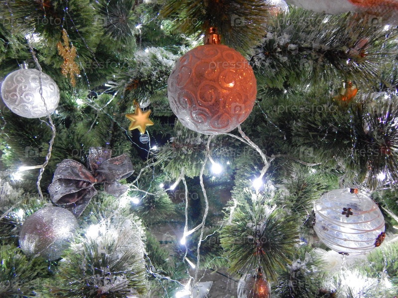 Гирлянда и игрушки на новогодней елке