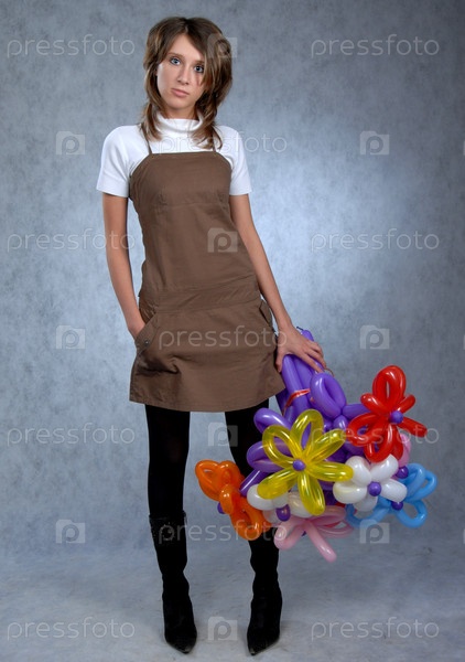 Девушка с букетом цветов из воздушных шаров