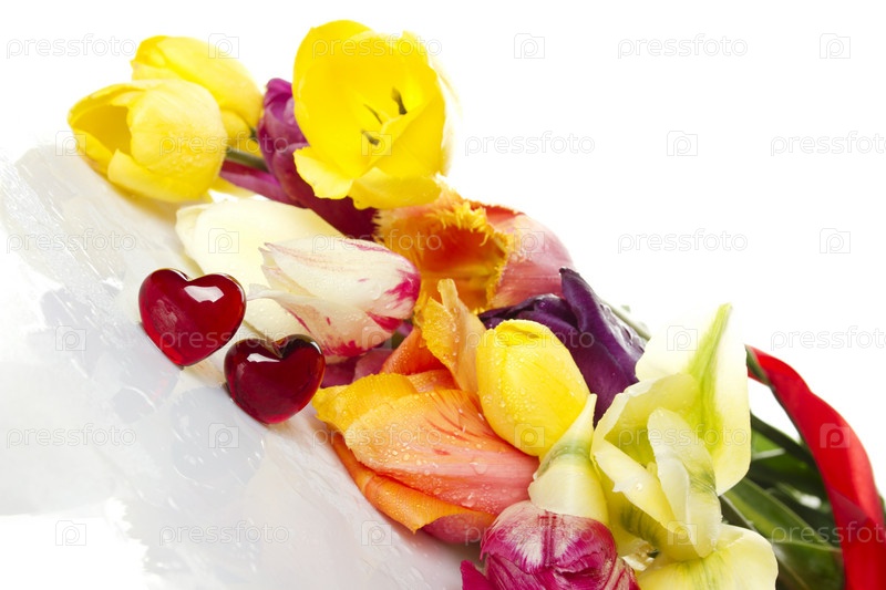 Яркий весенний букет на белом фоне