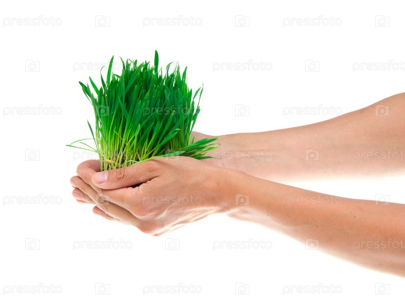 Трава в руках на белом фоне