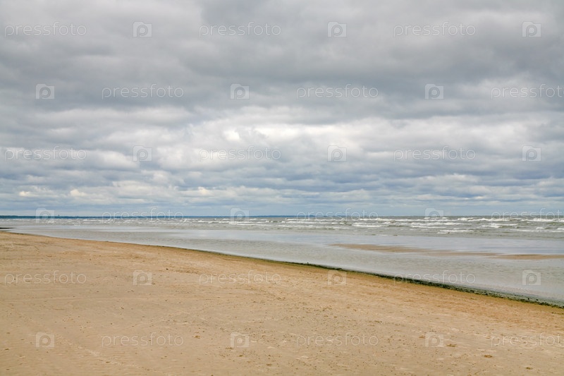 Песчаный пляж на Балтийском море. Рижский залив вблизи города Юрмала, Латвия