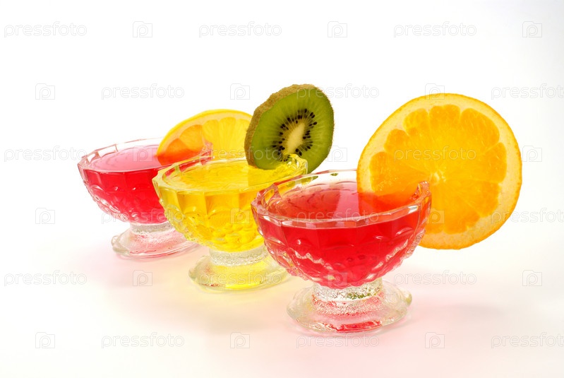 Вишневая желе и лимонная желе с фруктовыми сегментами