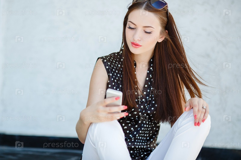 Красивая женщина с телефоном на улице
