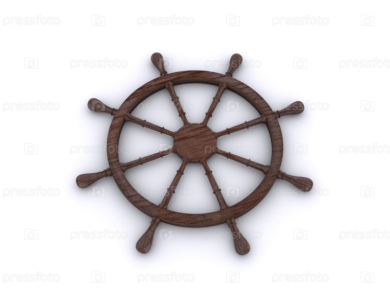 Деревянный 3D-штурвал, изолированный на белом фоне