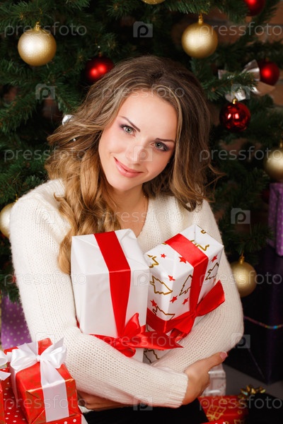 Счастливая девушка с подарками
