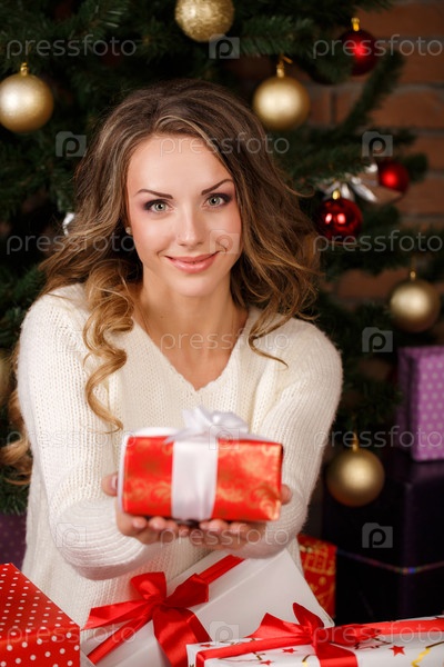Счастливая девушка с подарочной коробкой