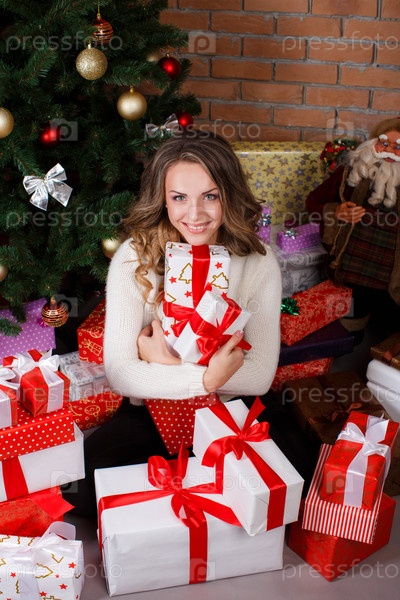 Счастливая девушка с подарками