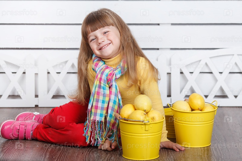 Девочка с лимонами в ведрах