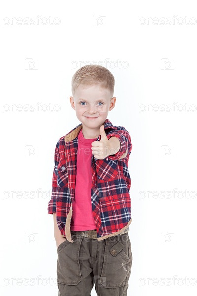 Счастливый мальчик на белом фоне