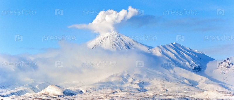 Извергающийся вулкан на Камчатке
