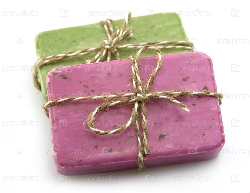 Мыло ручной работы на белом фоне