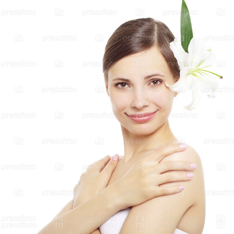Красивая девушка с цветком лилии в волосах