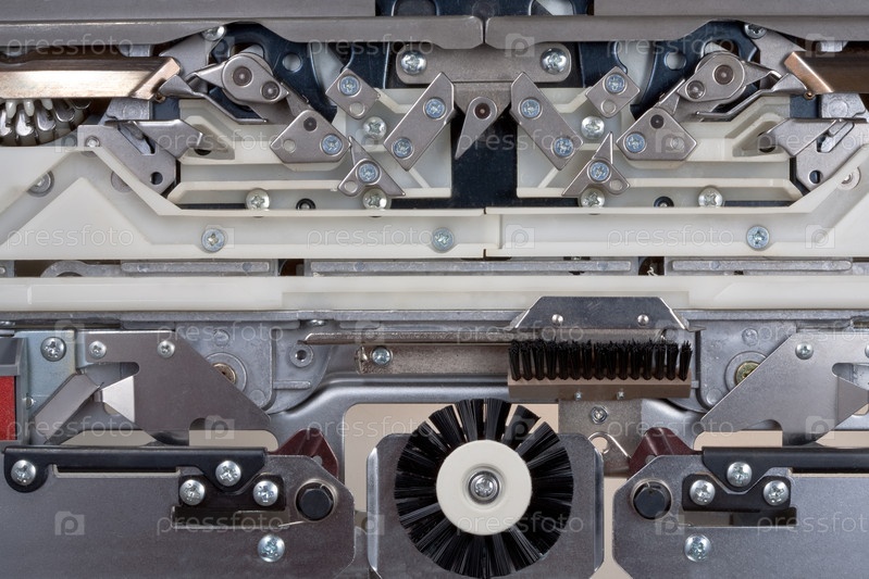 Механизм машинки для вязания кружев крупным планом