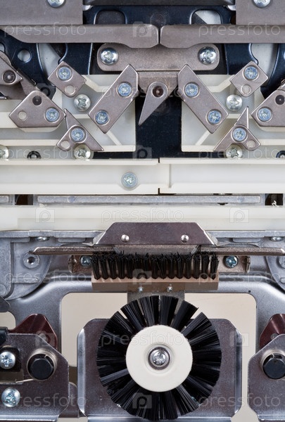 Механизм машинки для вязания кружев крупным планом