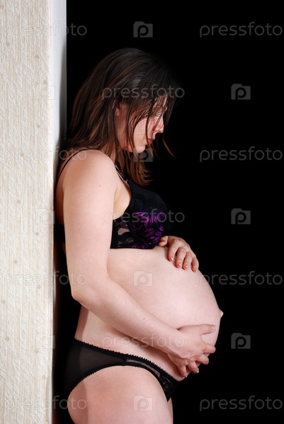 Беременная женщина на черном фоне