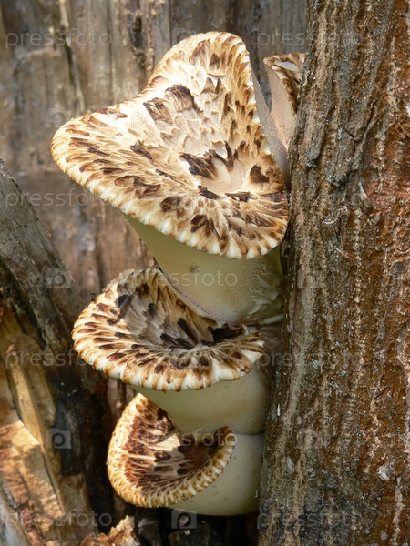 Молодые чешуйчатые трутовики (Polyporus squamosus, Полипорус чешный)