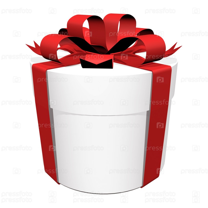 Подарочная коробка с бантом, на белом фоне