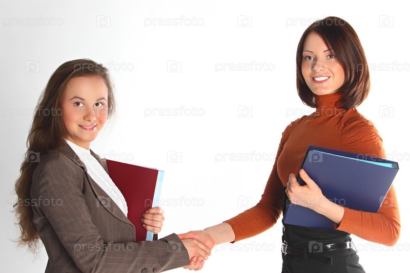 Две деловые девушки на белом фоне