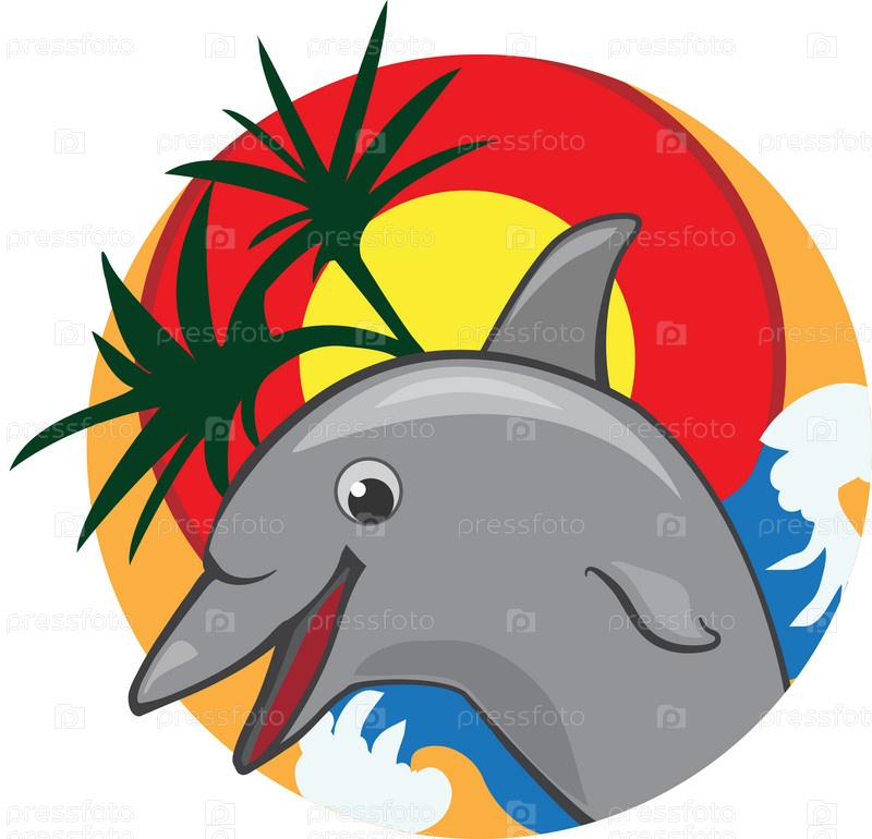 Нарисованный дельфин на фоне тропического пейзажа