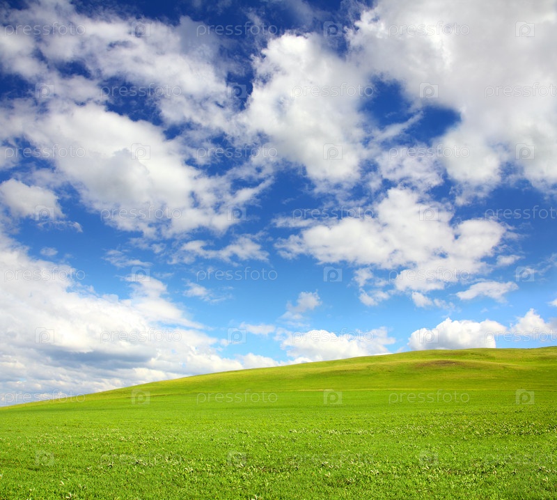 Зеленый холм под облачным небом