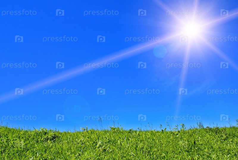 Плодородная зеленая трава и синее небо
