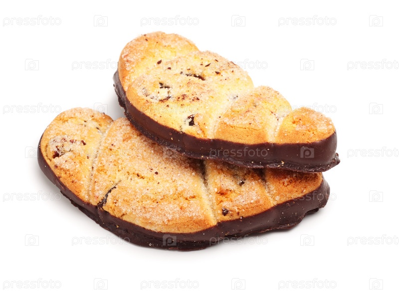 Песочное печенье в шоколаде на белом фоне