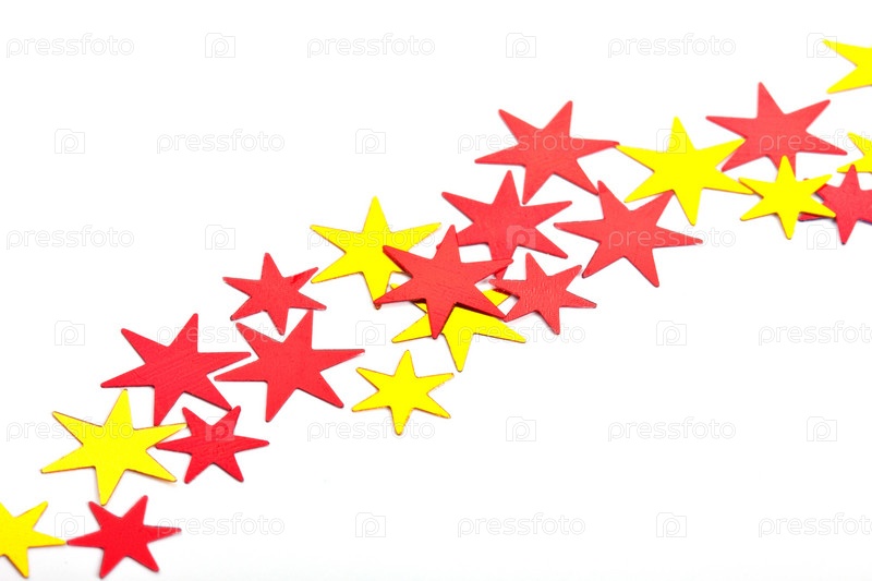 Желтые и красные звезды-конфетти на белом фоне