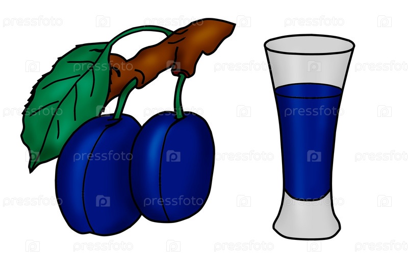 Ветка сливы и стакан сока