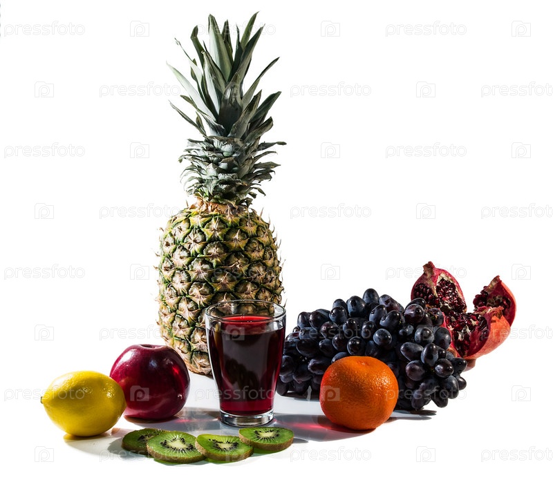 Фрукты и фруктовый сок, изолированные на белом фоне