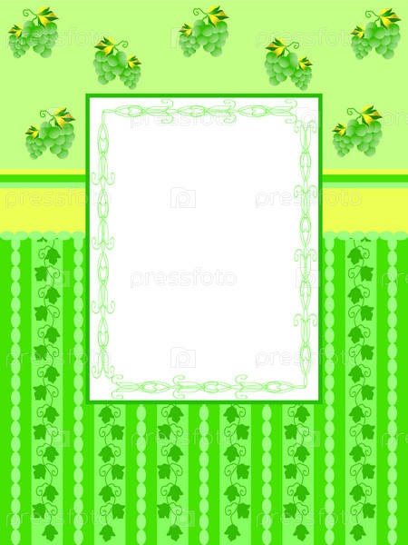 Зеленая открытка с виноградными гроздьями и местом для надписи