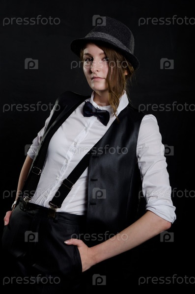 Молодая женщина позирует на темном фоне