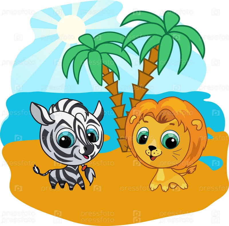 Нарисованные лев и зебра