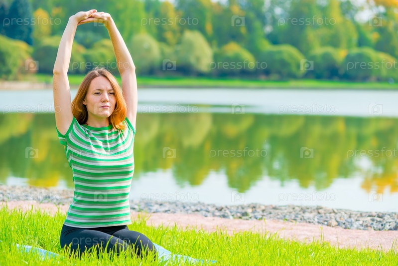 Девушка выполняет упражнения на природе
