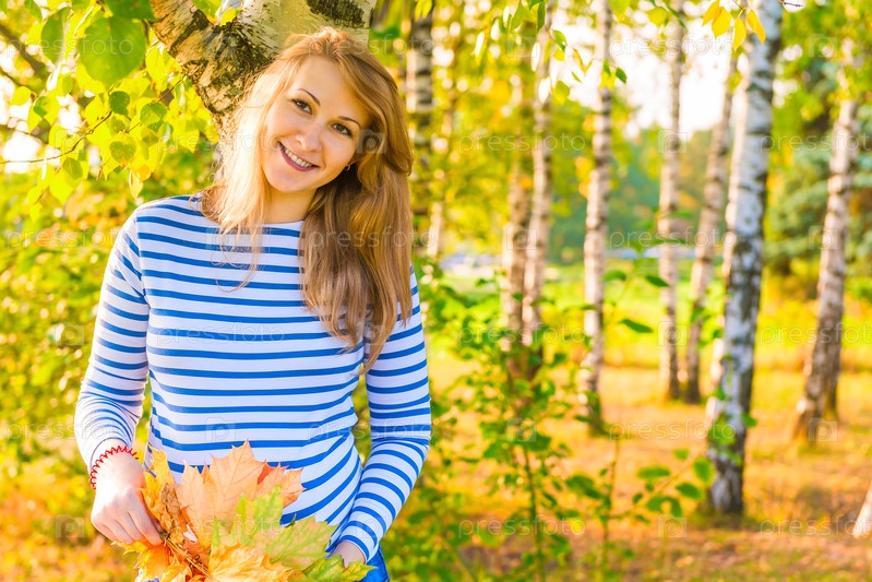 Счастливая будущая мать нуляет в осеннем парке