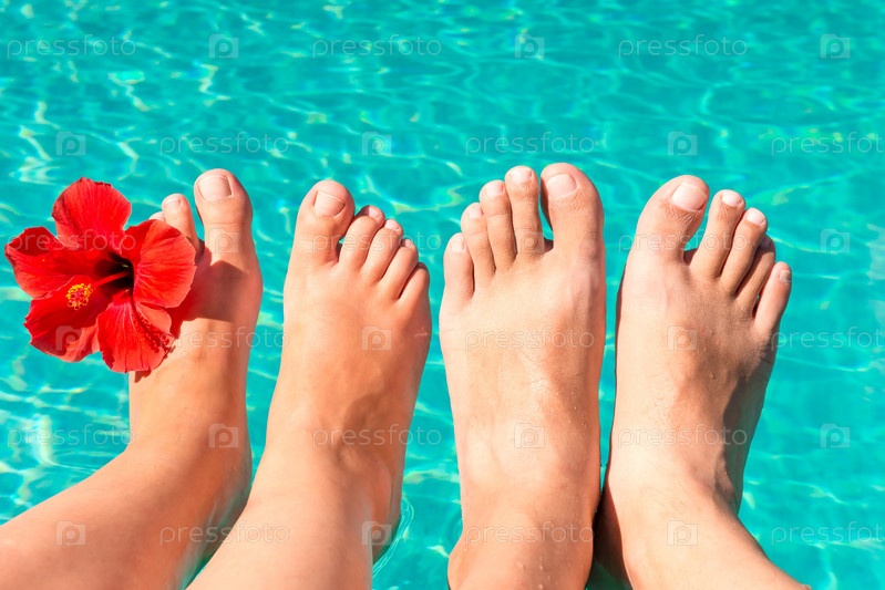 Ноги молодой пары в бассейне