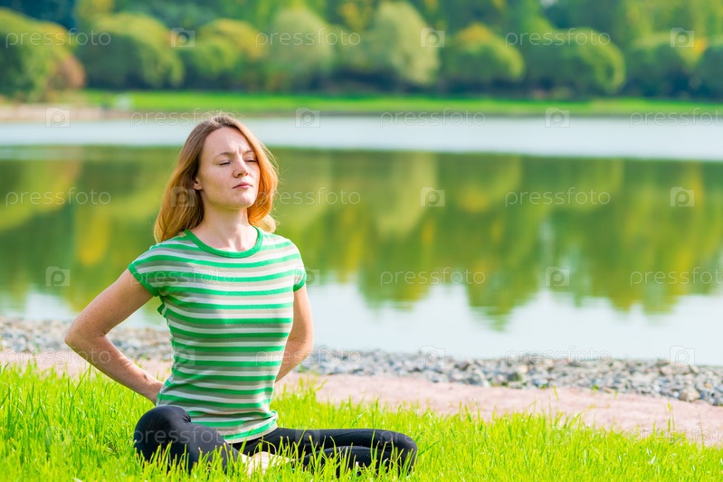 Девушка выполняет упражнения на природе