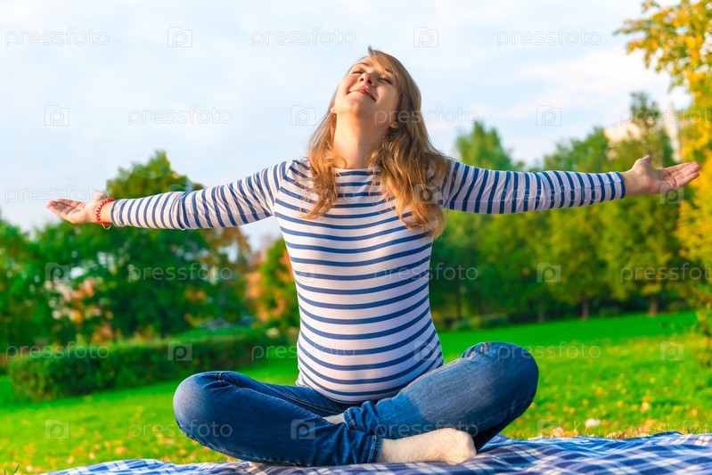 Беременная женщина в парке