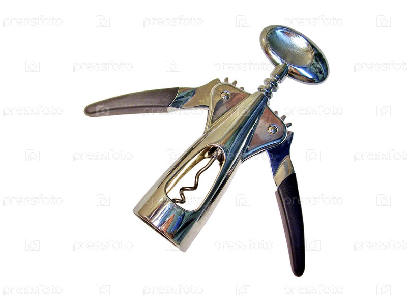 Металлический штопор на белом фоне