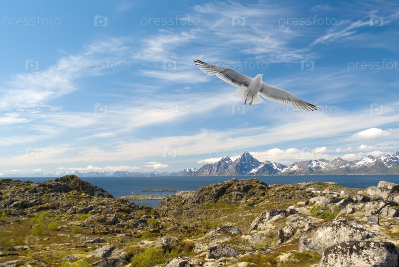 Чайки над норвежском острове