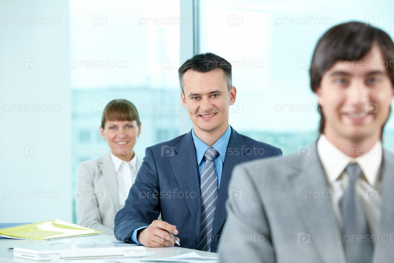 Улыбающиеся бизнесмены в офисе