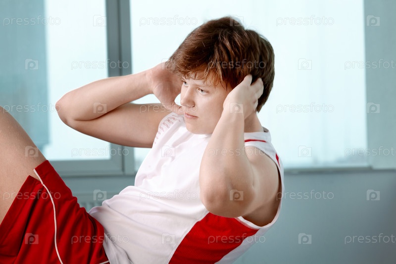 Молодой человек качает пресс