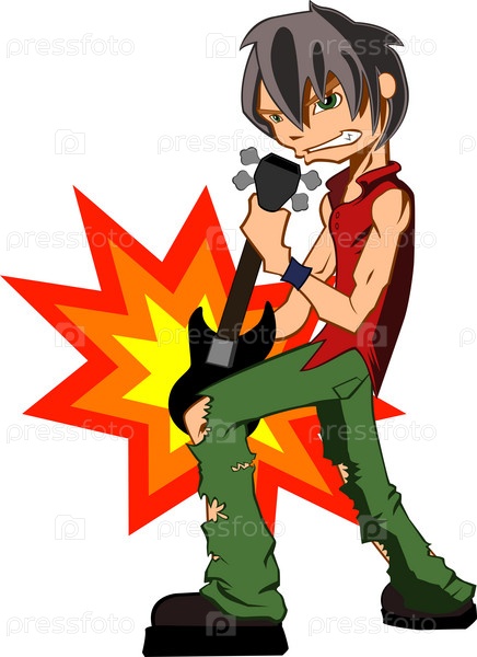 Иллюстрация молодого парня-гитариста на белом фоне