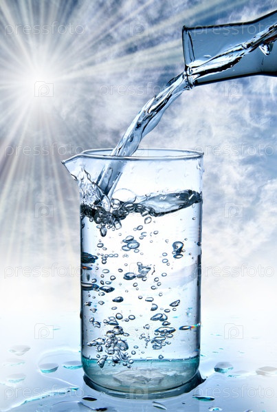 Воду наливают в мензурку на фоне неба